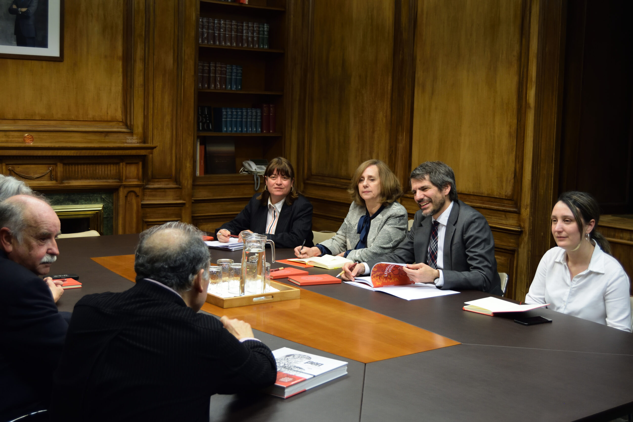 Gabinete del Ministerio de Cultura y Carmen Noguero Galilea, secretaria general del Instituto Cervantes en una reunión previa al evento PEN con sus representantes- Alejandra Cabrera